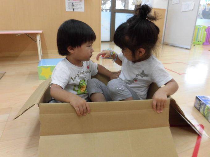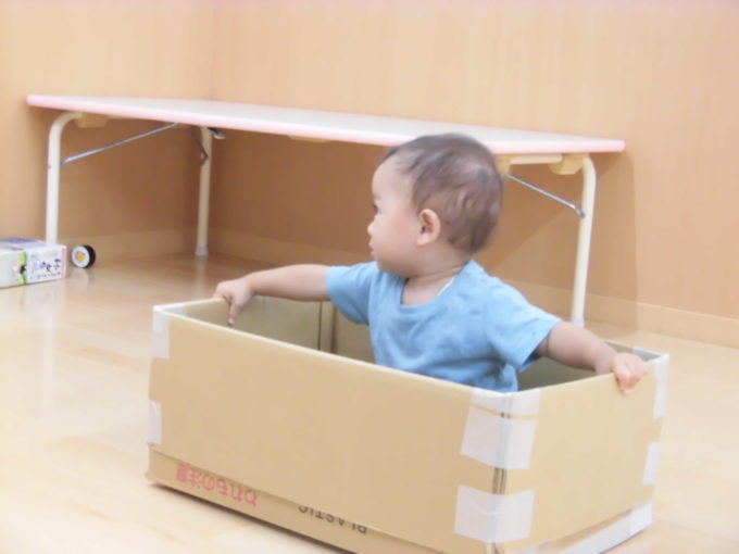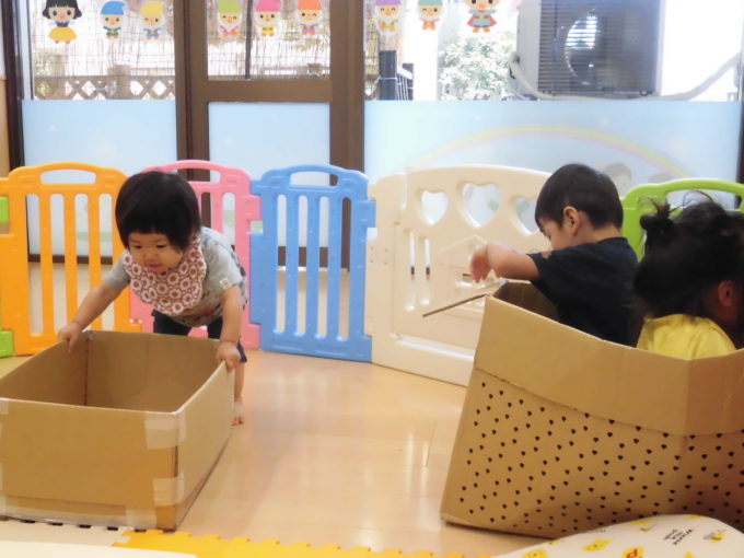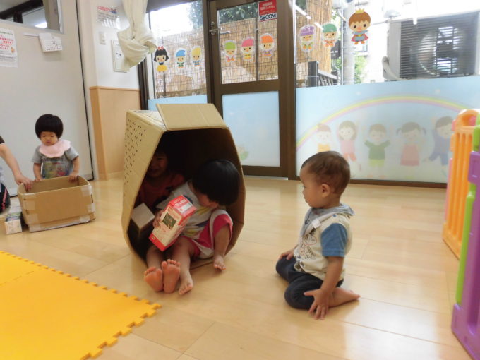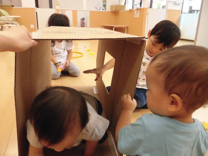 段ボールのお風呂にトンネル!