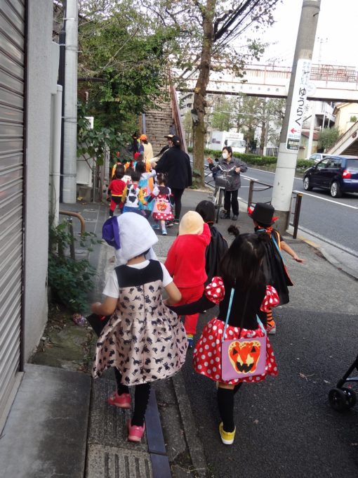 ご近所の商店街を仮装行列。