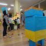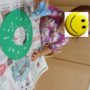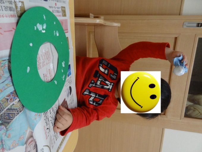 今日は風船に思い思いのカラーシールを貼った制作物(凧)を連れてお散歩に行きました。