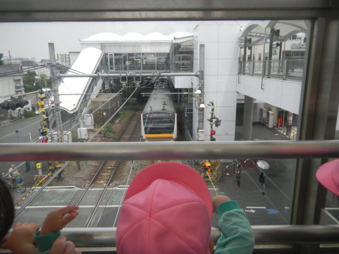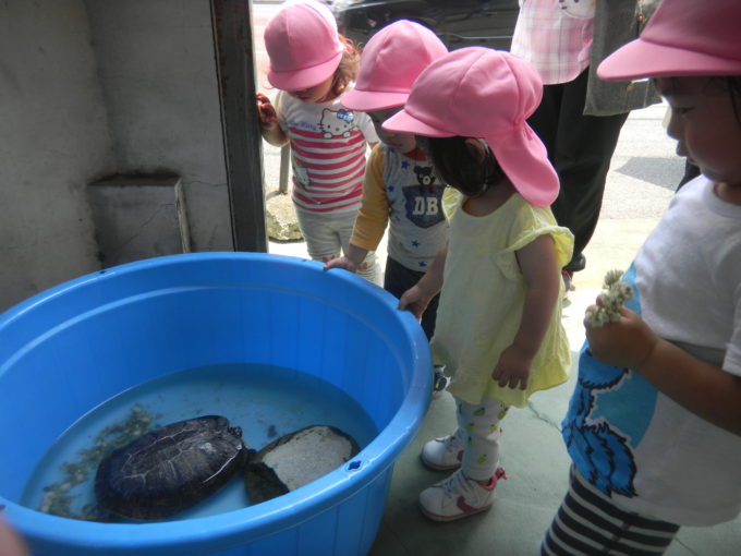 カメを見たり、アメンボを見たり、電車を見たり・・・定番のお散歩コース。