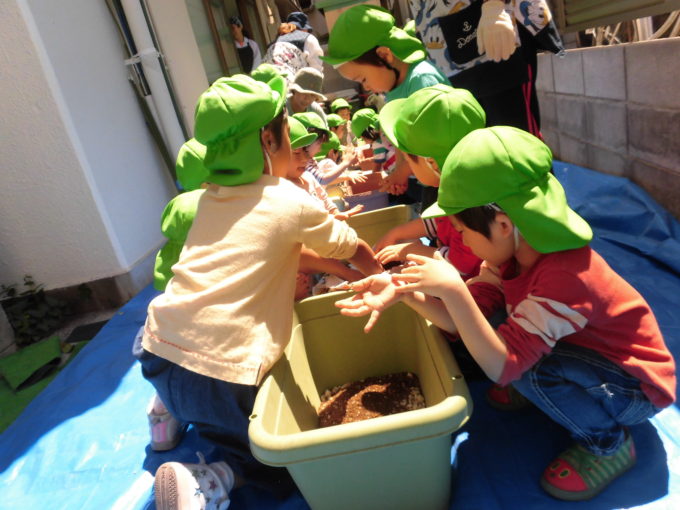 園内で先生からハロウィンの由来を聞き、仮装したままご近所を練り歩きました。